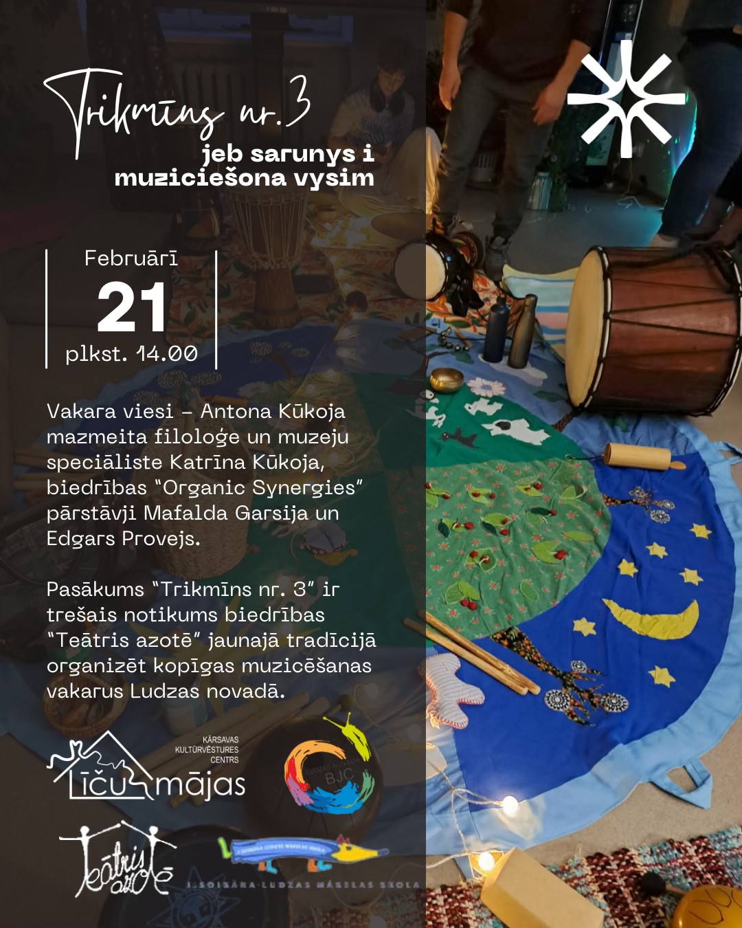 Pasākums “Trikmīns nr. 3” ir trešais notikums biedrības “Teātris azotē” jaunajā tradīcijā organizēt kopīgas muzicēšanas vakarus. Šī muzicēšanas forma ir dzīvīga, piemērota visām paaudzēm un tai nav nepieciešamas priekšzināšanas mūzikā. Organizē biedrība “Teātris azotē” sadarbībā ar J.Soikāna Ludzas mākslas skolu un Ludzas novada Bērnu un jauniešu centru.