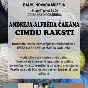 24.aprīlis 14:00-16:00 Adīšanas nodarbība Balvu Novada muzejā “Andreja–Alfrēda Čakāna cimdu raksti”