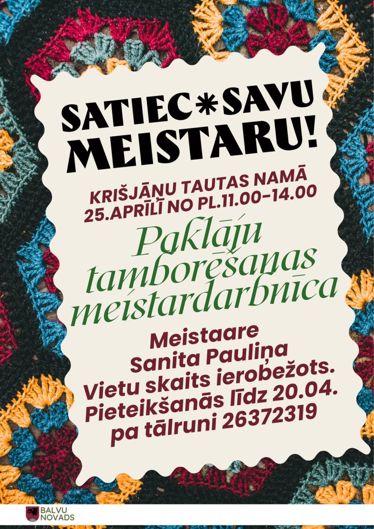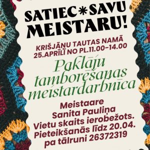 25.aprīlis 14:00 – 17:00 Tamborētu paklāju meistardarbnīca “Radi savu paklāju” Krišjāņos