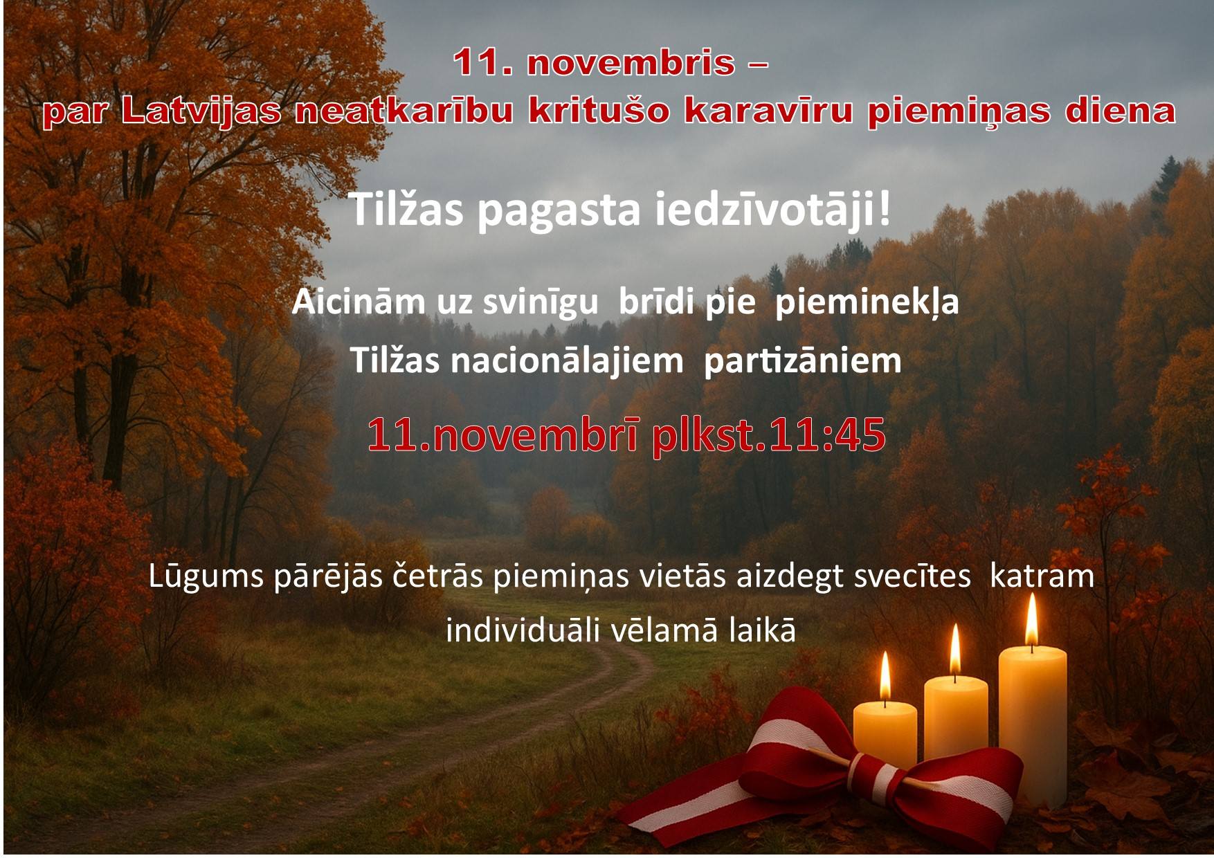 11:45 Svecīšu nolikšana brīvības cīnītāju piemiņas vietās Tilžas pagastā