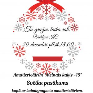 18:00 Pasākums “Ak šis jaukais svētku laiks…”. Piedalās amatiermākslas kolektīvi