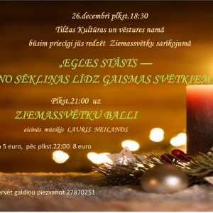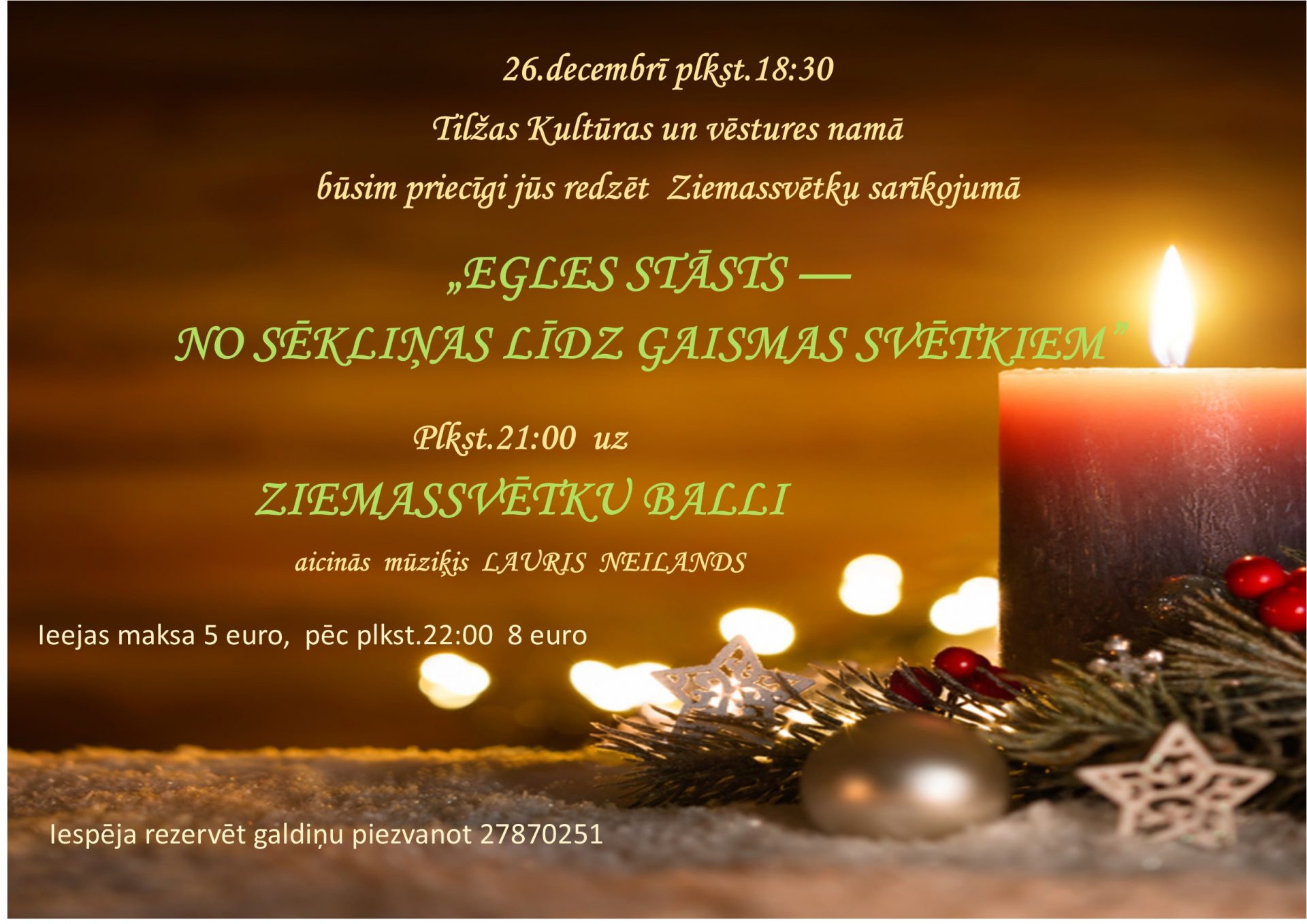 18:30 Ziemassvētku sarīkojums “Egles stāsts- no sēkliņas līdz gaismas svētkiem”